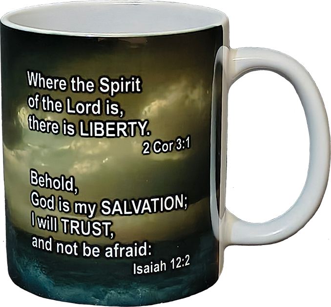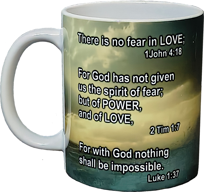 The Bible Verses featured on this mug carry themes of the POWER of LOVE and the OVERCOMING of FEAR and SALVATION from both the Old and New Testament, from the Gospel of Luke, the First Letter of John to the Churches of Asia, the Prophet Isaiah and the Letters of Paul to the Corinthians and Timothy, a Bishop of the Early Church [1 John 4:18, Luke 1:37, 2 Tim 1:7, 2 Cor 3:1 and Isaiah 12:2]. They are a constant reminder of God’s Promises and Direction for your life, to contemplate during those quiet times of meditation as you start your day.